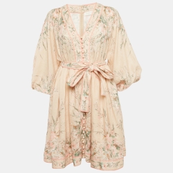 Zimmermann Pink Floral Print Linen Mini Dress L