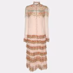 Zimmerman Multicolor Silk Kaleidoscope Tiered Frill Midi Dress XS