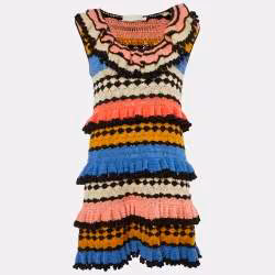 Zimmermann Multicolor Crochet Knit Tiered Dress L