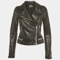 AllSaints Charcoal Grey Leather Zip-Up Addison Biker Jacket M
