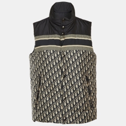 Christian Dior Navy Blue Oblique Synthetic Reversible Puffer Vest Jacket XS