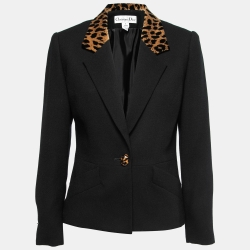 Christian Dior Vintage Black Wool Cheetah Print Collar Blazer M