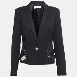 Christian Dior Boutique Black Wool Studded Strap Detail Blazer L