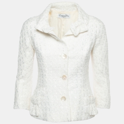 Dior Vintage Off White Tweed Single Breasted Blazer S