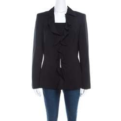 Escada Black Wool Pleat Detail Button Front Beaneth Jacket L