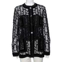 Gucci Black Cotton & Leather Applique Detailed Jacket S