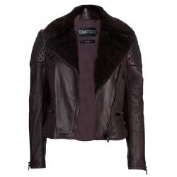 Tom Ford Burgundy Fur-Trim Quilting Detail Leather Jacket S