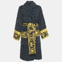 Versace Navy Blue Monogram Medusa Amplified Terry Bathrobe S