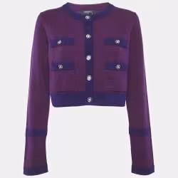 Chanel Purple Cashmere Button Front Cardigan L