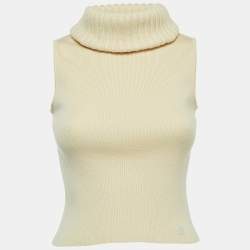 Louis Vuitton White /Cream Knit Ruffled Top XS