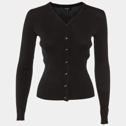 Chanel Black Wool & Cashmere Rib Knit Cardigan S