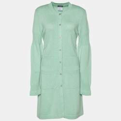 Chanel Mélange Green Cashmere Rib Knit Long Cardigan L