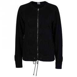 Chanel Black Chenille Embroidered Zip Front Cashmere Cardigan M