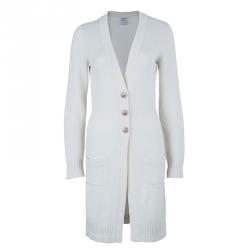 Chanel White Cotton Cable Knit Button Front Cardigan M