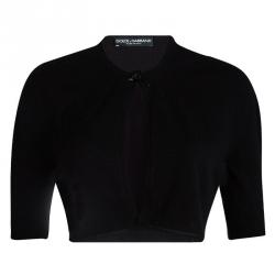 Dolce and Gabbana Black Rib Knit Logo Bow Detail Cardigan M