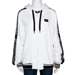 Dolce and Gabbana White Crown Logo Print Jersey Hoodie M