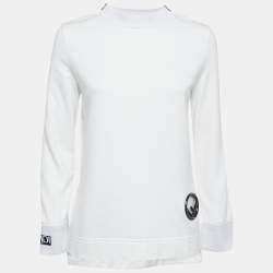 Fendi White Cotton Logo Detail Zip Up Hoodie L