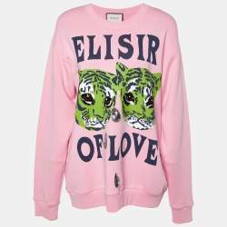 Gucci Blue/Pink Tiger Patterned Lurex Knit Sweatshirt L