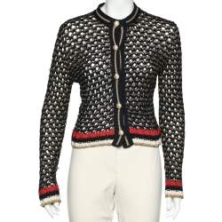 Gucci Black Wool Front Button Web Trim Lurex Long Sleeve Sweater S