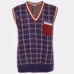 Miu Miu Blue Contrast Detail Wool Knit Sleeveless Sweater S