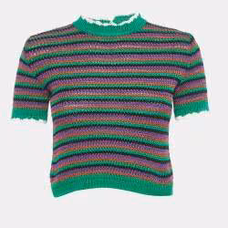 Miu Miu Multicolor Stripe Crochet Knit Short Sleeve Sweater S