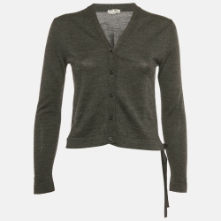 Miu Miu Grey Wool Knit V-Neck Crop Sweater S