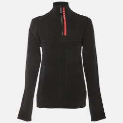 Prada Sport Black Textured Stretch Knit Pullover L
