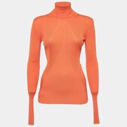Victoria Beckham Orange Rib Chevron Slim Polo Neck Top M