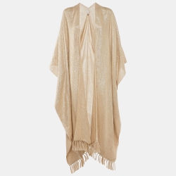 Brunello Cucinelli Gold Lurex Knit Fringed Long Cape One Size