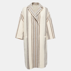 Brunello Cucinelli Cream Striped Wool & Cashmere Felt Coat M