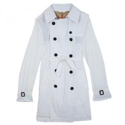 Burberry Brown Cotton Blend Leather Detail Short Trench Coat XS