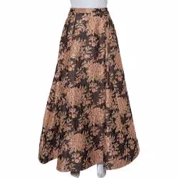 Alice + Olivia Brown Lurex Floral Jacquard Pleated Rachelle Maxi Skirt S
