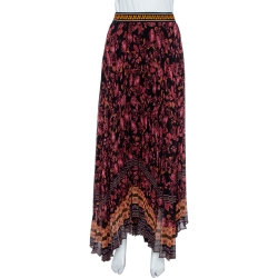 Alice + Olivia Multicolor Silk Chiffon Katz Floral Print Pleated Maxi Skirt XL