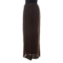 Chanel Brown Wool Blend Knit Maxi Skirt L