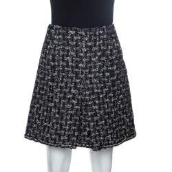 Chanel Monochrome Tweed Sequin Embellished Skirt L