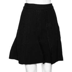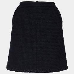 Chanel Black Textured Cotton Overlay Detail Skirt M