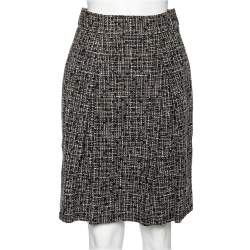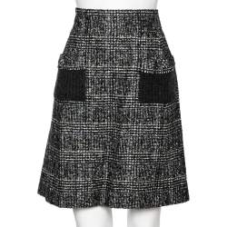 Chanel Black & Beige Tweed Back Button Detail Knee Length Skirt M
