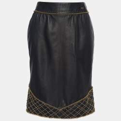 Chanel Black Leather Lace Up Detailed Short Skirt M
