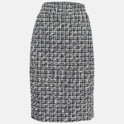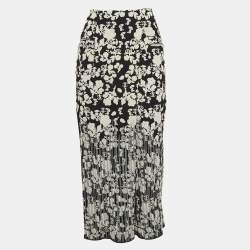 Chanel Black Floral Patterned Knit Midi Skirt S