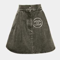Chanel Grey logo Applique Lurex Denim No5 Mini Skirt S