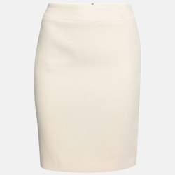 Chanel Cream Tweed Pearl Embellished Midi Skirt M