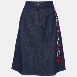 Chanel Indigo Denim Coco Applique A-Line Skirt L