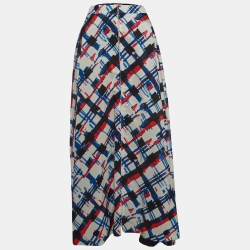 Chanel Multicolor Printed Silk Pleated Knee Length Skirt S