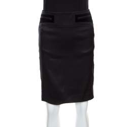 Gucci Black Cady Ruched Belt Detail Knee-Length Skirt S