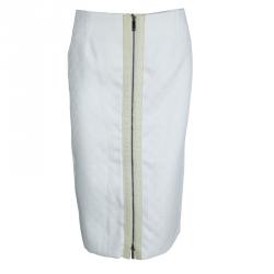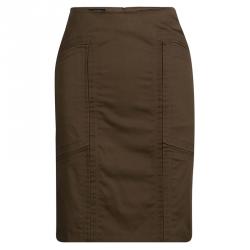 Gucci Brown Stretch Cotton Gold Buckle Detail Pencil Skirt L