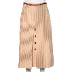 Gucci Cream Striped Wool Horsebit Detail Midi Skirt S