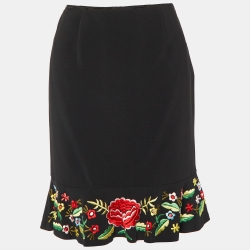 Moschino Black Crepe Embroidered Flared Hem Mini Skirt M