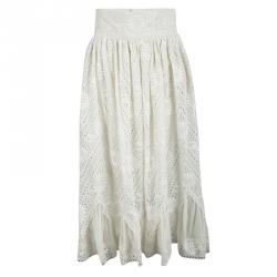 Valentino Cream Cotton Eyelet Embroidered High Waist Gathered Midi Skirt S