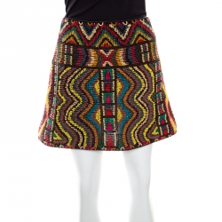 Valentino Multicolor Linen Laser Cut Beaded Embellished Skirt M