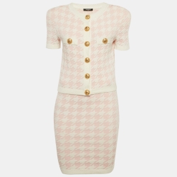 Balmain Pink Houndstooth Knit Skirt Suit S
